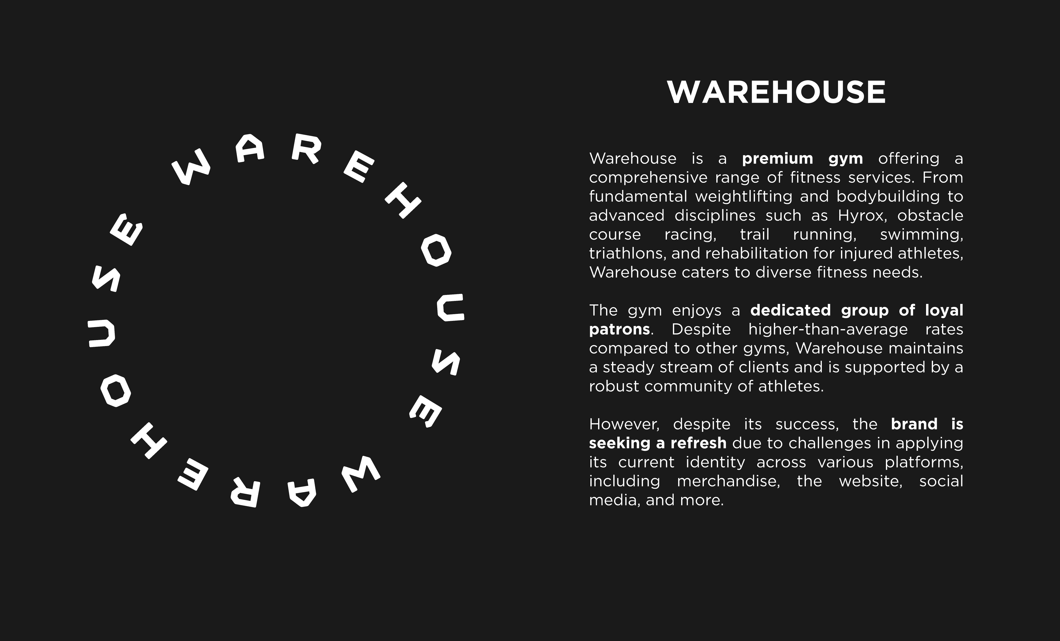 Warehouse wasn’t built for casual gym-goers. It’s a premium training ground designed for weightlifters, bodybuilders, Hyrox competitors, obstacle course racers, and endurance athletes pushing their limits. With its reputation for expert coaching and elite-level programming, Warehouse had already carved out a niche in the fitness world. But as its community grew, its brand struggled to keep pace.